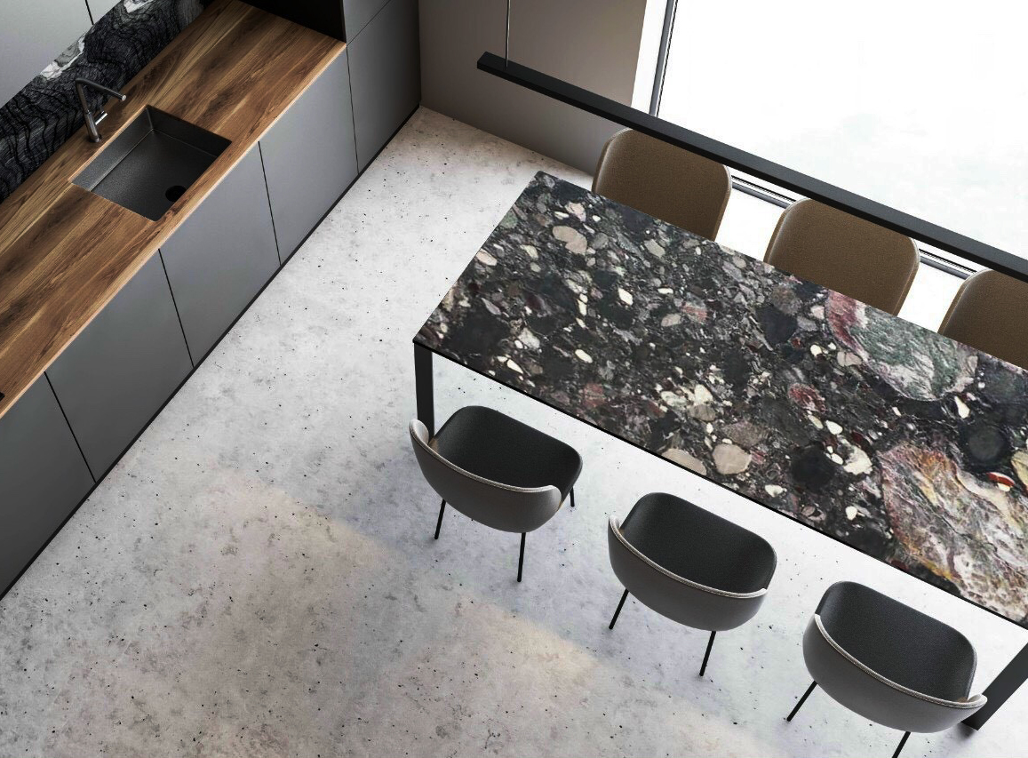 Bàn ăn ốp đá Granite Đen vân đá sỏi