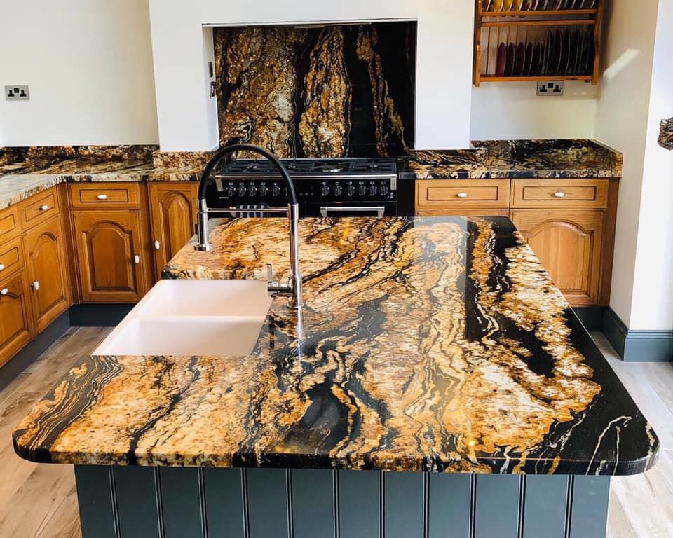 Bếp - Lavabo ốp đá Granite Vàng nham thạch (Magma Gold)