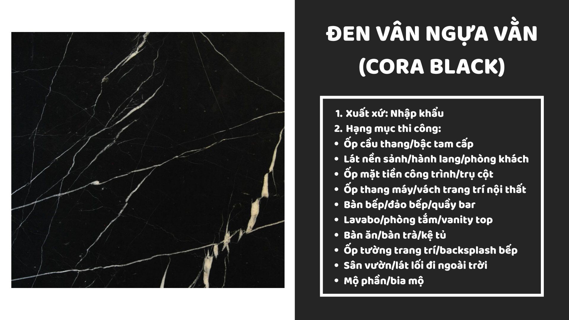 ĐÁ MARBLE ĐEN NGỰA VẰN (CORA BLACK)