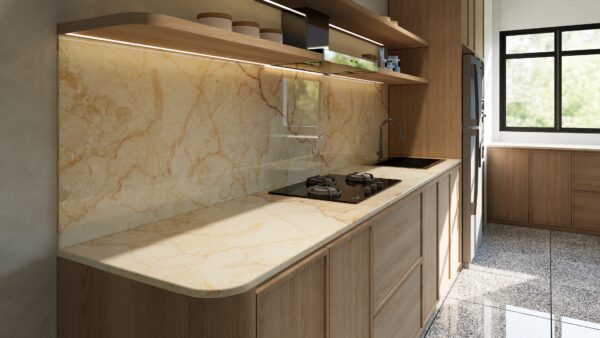 Phòng bếp ốp đá Marble Hồng vân đỏ (Rosalight)