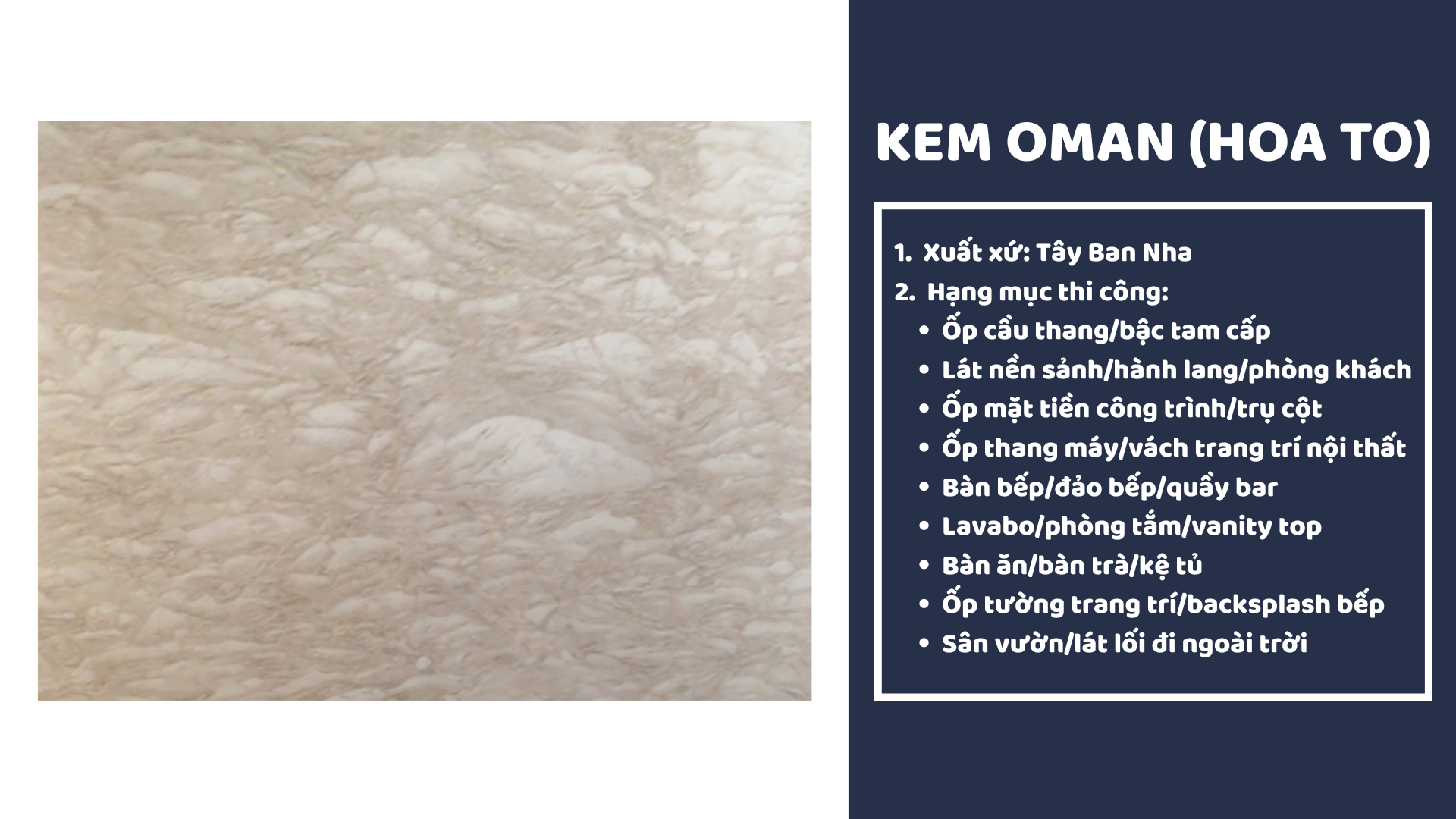 Giới thiêụ về đá Marble Kem Oman (Hoa to)