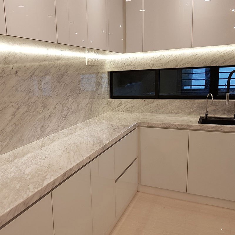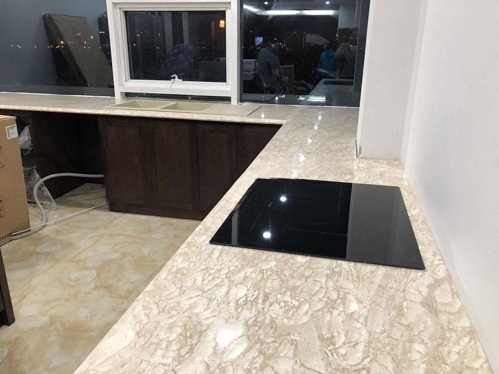 Bếp ốp đá Marble Kem Oman (Hoa to)