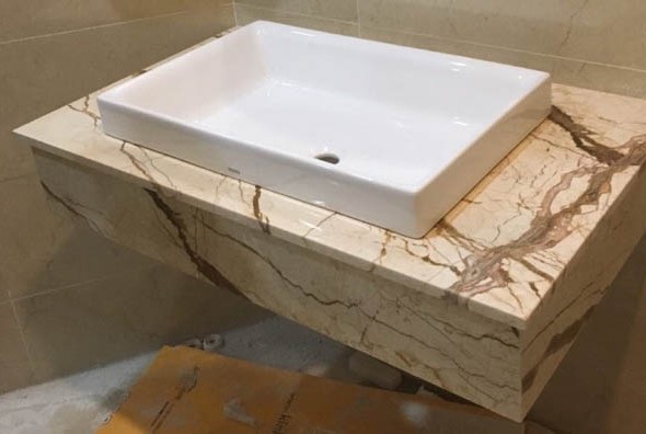 Lavabo ốp đá Marble Trắng kem vân chỉ vàng (Sofita Marble)