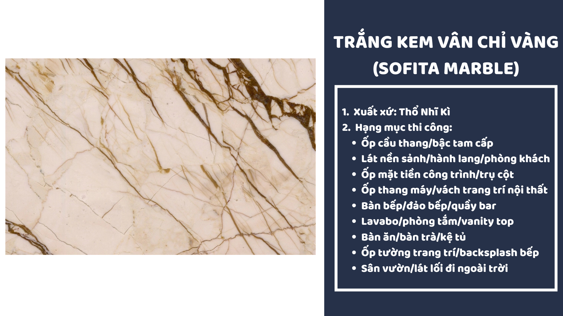 Giới thiệu về đá Marble Trắng kem vân chỉ vàng (Sofita Marble)