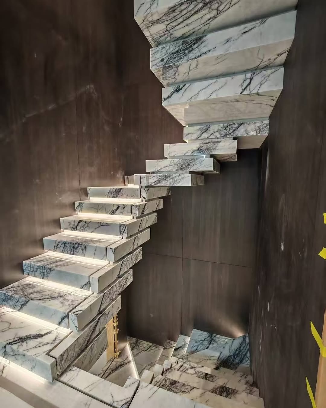 Cầu thang ốp đá Marble Trắng Tóc Tiên (Milas Lilac)
