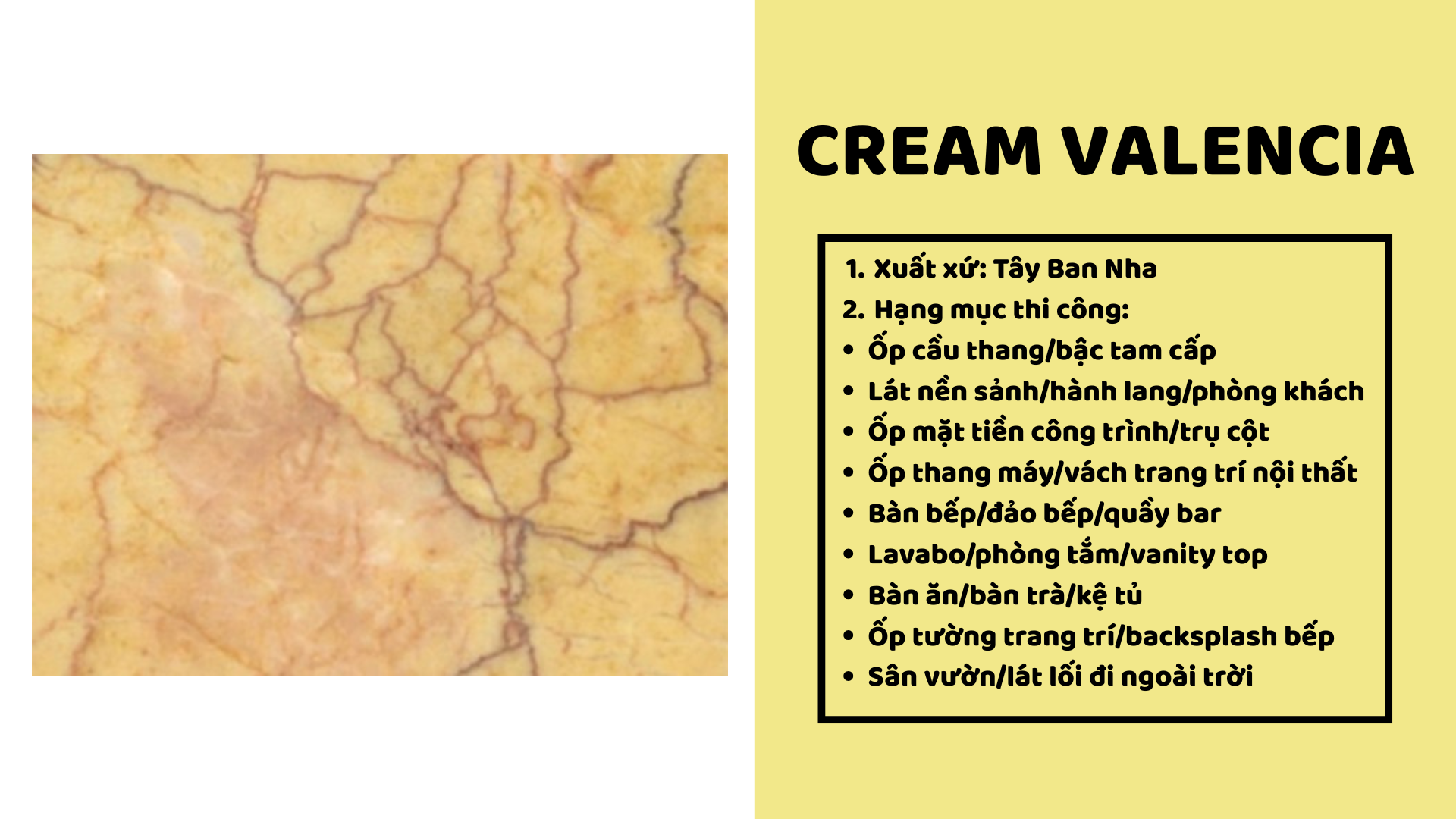 Giới thiệu về đá Marble Vàng Cream Valencia
