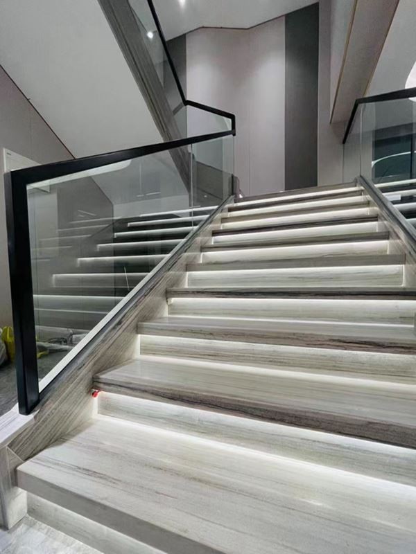 Cầu thang ốp đá Marble Xám vân gỗ đậm