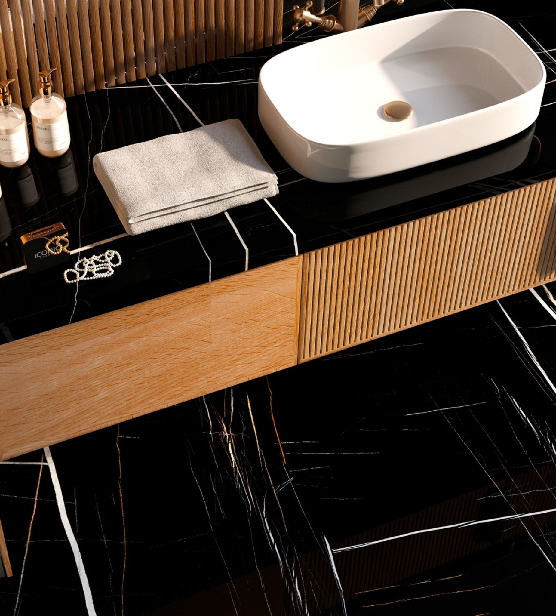 Lavabo ốp đá Nung kết Đen Sa mạc Sahara