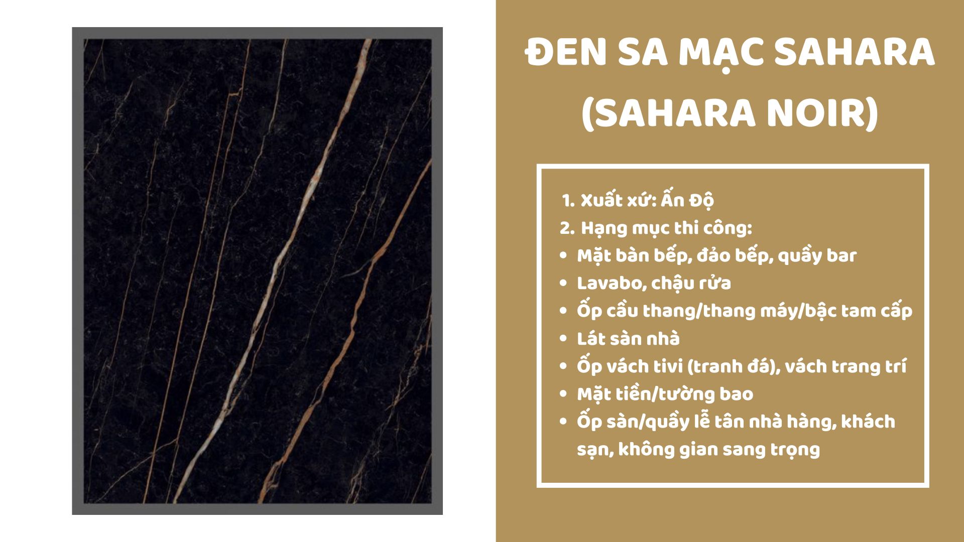 Đá Nung kết Đen Sahara Noir nổi bật với nền đen huyền bí, điểm xuyết những đường vân trắng và vàng cam mạnh mẽ, tạo nên vẻ đẹp sang trọng và cá tính. Với sự tinh tế trong từng đường vân, loại đá này thích hợp cho các không gian nội thất hiện đại, mang lại dấu ấn độc đáo và đẳng cấp.