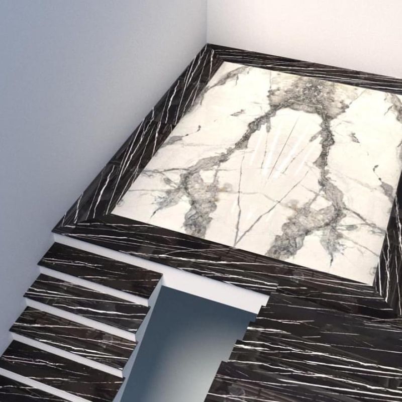 Cầu thang ốp đá Nung kết Trắng Grigio Unico chính giữa
