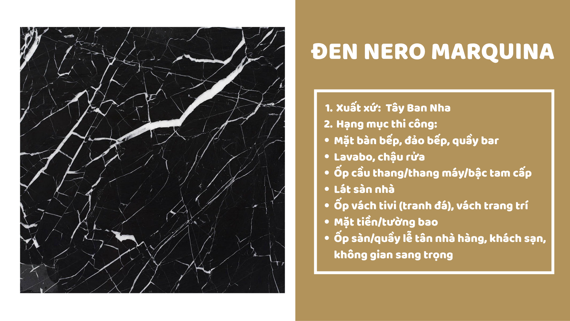 Phòng trưng bày ốp đá Nung kết Đen Nero Marquina
