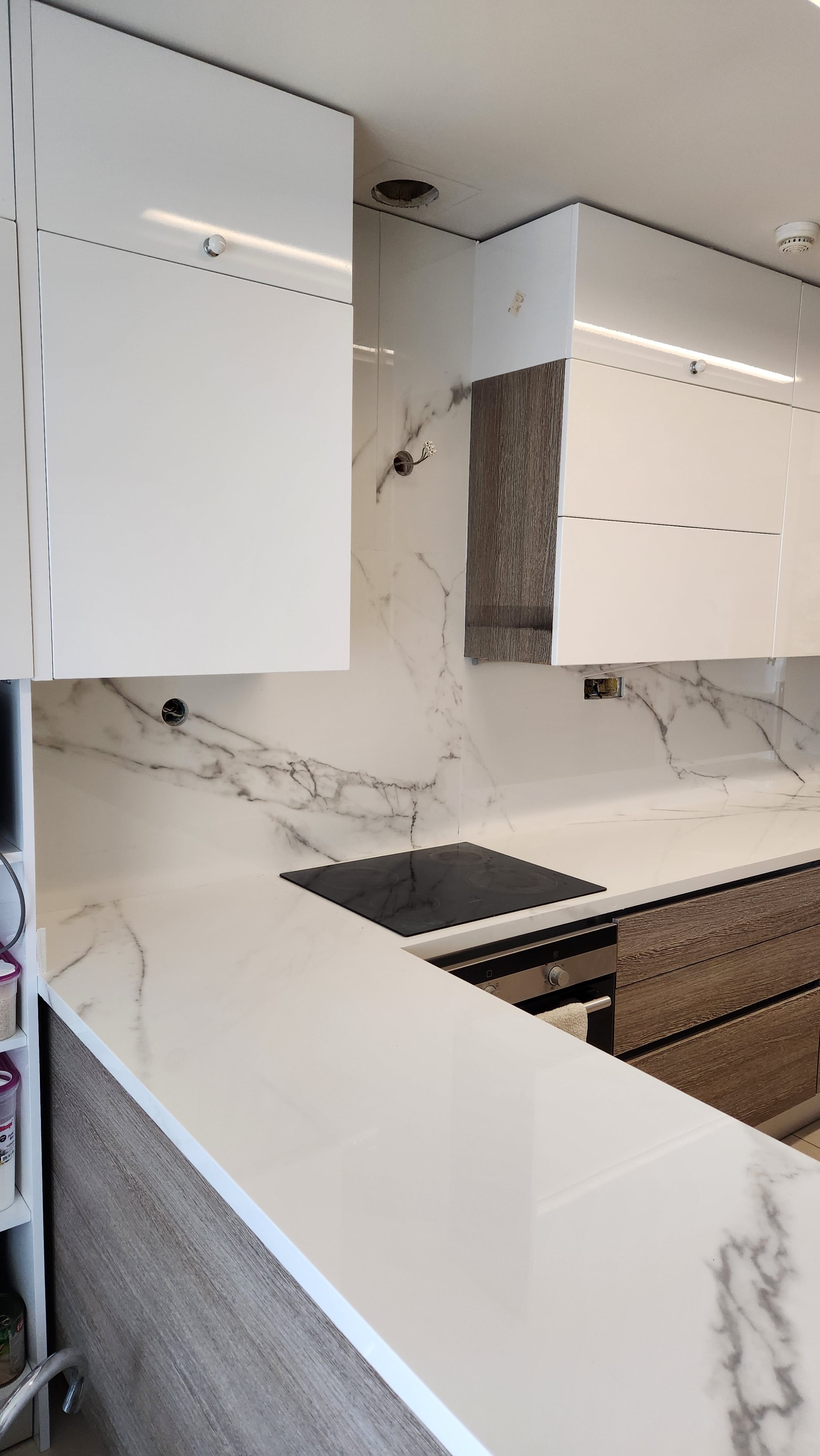 Bếp - Đảo bếp ốp đá Nung kết Trắng Rome