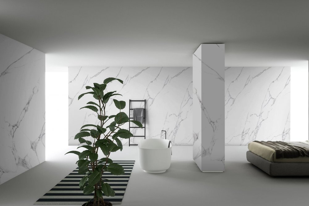 Phòng tắm ốp đá Nung kết Trắng Rome