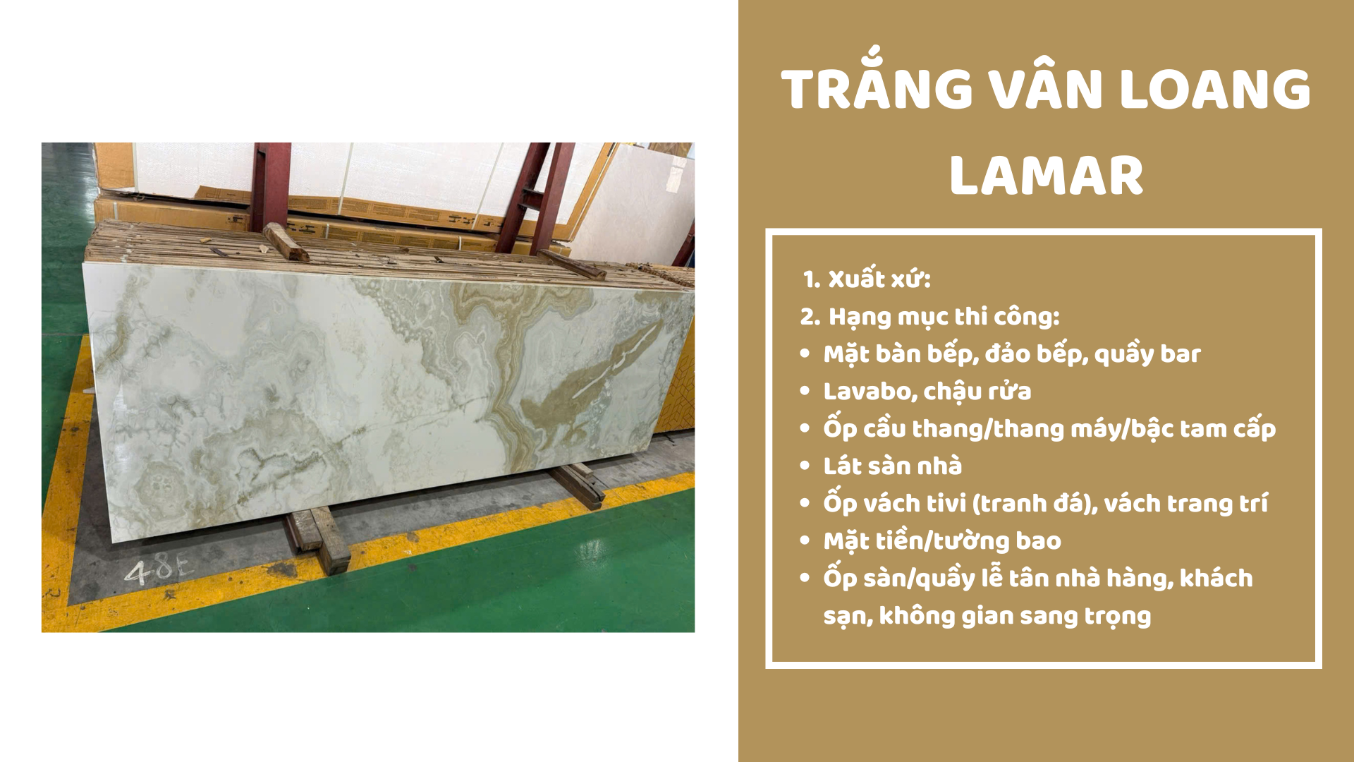 Đá Nung Kết Trắng Vân Loang sở hữu nền trắng tinh khôi kết hợp cùng những đường vân loang mềm mại, tựa như những áng mây bay tạo nên vẻ đẹp thanh lịch và tự nhiên. Bề mặt đá bóng sáng, hiện đại, dễ phối hợp với nhiều phong cách nội thất khác nhau. Đây là lựa chọn hoàn hảo cho mặt bàn bếp, quầy bar, ốp tường hay sàn nhà, mang đến không gian sang trọng và tinh tế.