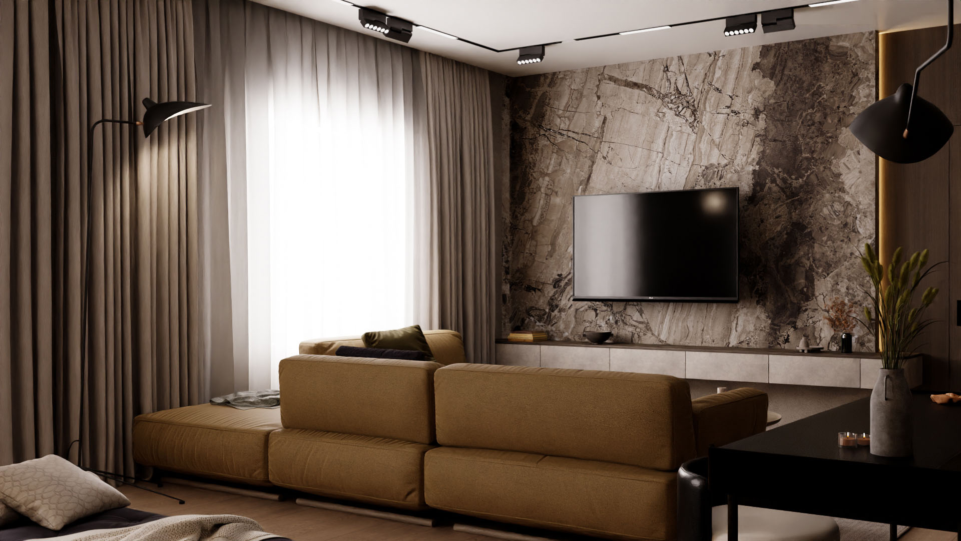 Vách tivi ốp đá Nung kết Lamar Xám Orobico