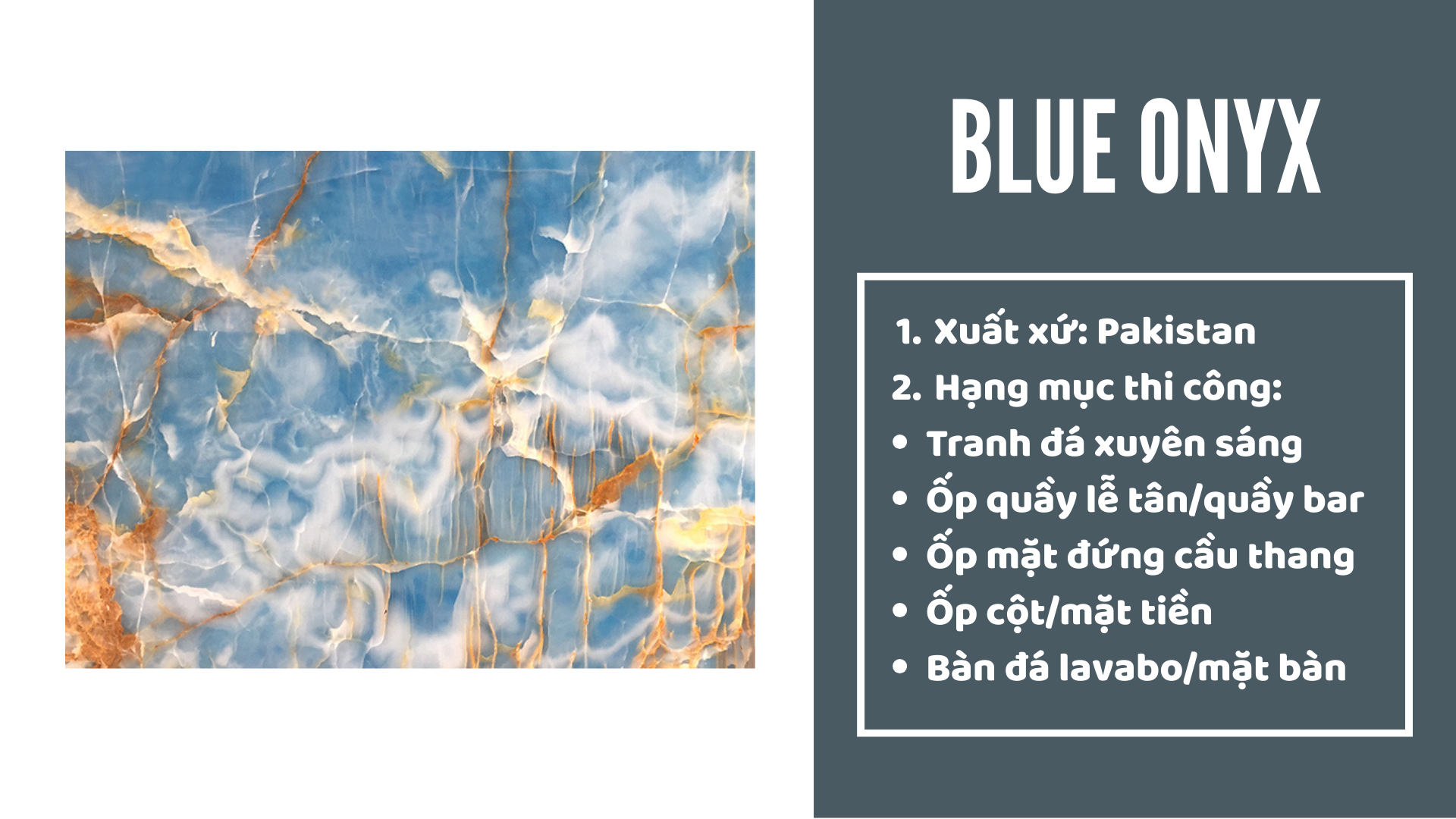 Đá xuyên sáng xanh ngọc bích là loại đá trang trí cao cấp có màu xanh ngọc sang trọng, huyền ảo. Nhờ khả năng xuyên sáng độc đáo, khi kết hợp cùng hệ thống đèn, bề mặt đá tạo hiệu ứng lung linh, huyền bí, làm nổi bật không gian. Loại đá này thường được sử dụng cho quầy bar, vách ngăn, bàn tiếp khách hay các điểm nhấn nội thất, mang lại vẻ đẹp hiện đại và đẳng cấp.