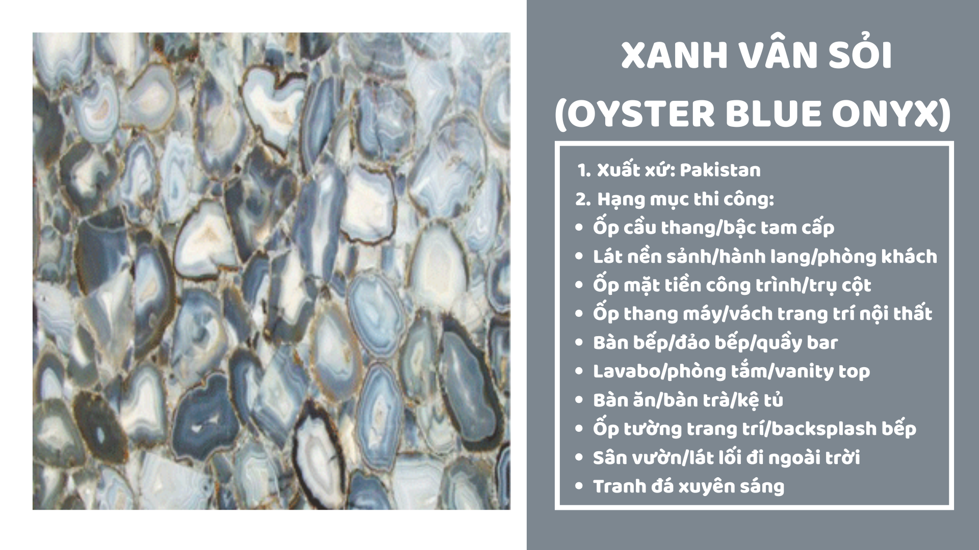 ĐÁ XUYÊN SÁNG XANH VÂN CHỈ (OYSTER BLUE ONYX)
