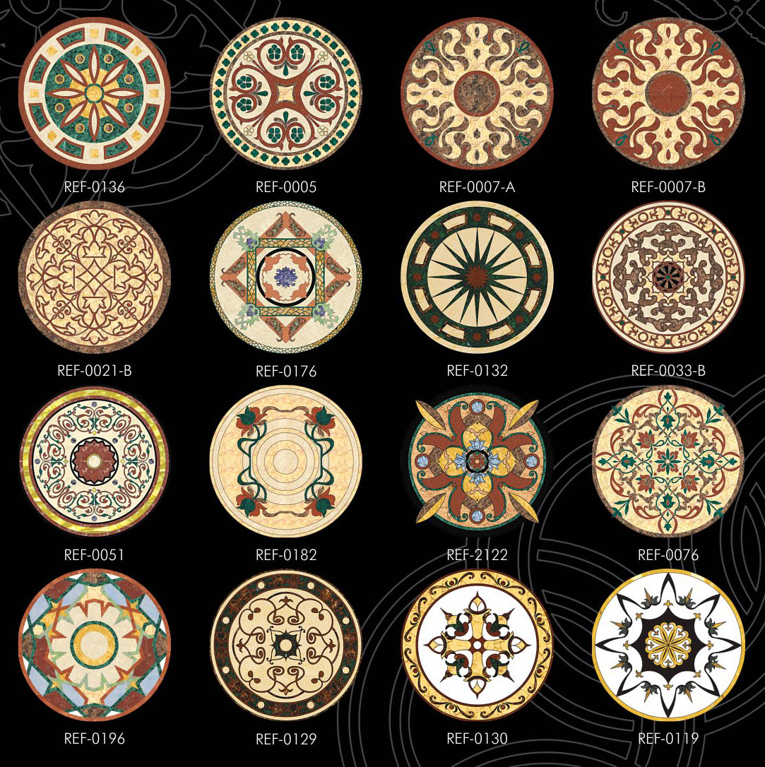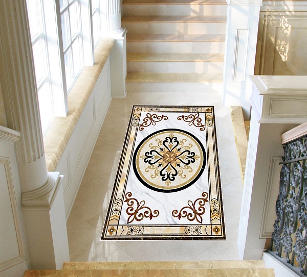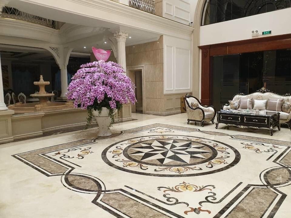 - Đá Hoa văn hình tròn được xem như biểu tượng của sự hoàn hảo và vĩnh cửu. Những đường nét hoa văn được sắp xếp theo bố cục tròn hài hòa, mang đến cảm giác cân đối và mềm mại cho không gian. Loại đá này thường được ứng dụng tại các khu vực trung tâm như sảnh lớn, phòng khách, quảng trường hay đại sảnh khách sạn – nơi cần tạo ấn tượng mạnh mẽ và sang trọng. Ngoài ra, theo quan niệm phong thủy, hình tròn còn tượng trưng cho sự viên mãn, thịnh vượng và đoàn kết, rất được ưa chuộng trong thiết kế kiến trúc cao cấp.