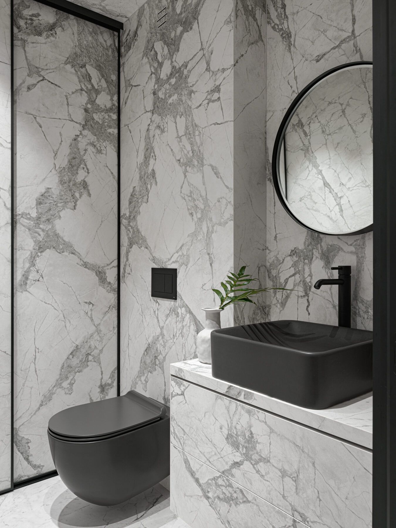 - Ưu điểm: Đá Nung kết Lamar là lựa chọn lý tưởng khi lát sàn phòng tắm và nhà vệ sinh nhờ khả năng chống thấm nước, chống trơn trượt và dễ dàng vệ sinh. Với bề mặt cứng chắc, ít bám bẩn và kháng khuẩn tốt, loại đá này giúp không gian luôn sạch sẽ, bền đẹp theo thời gian, đồng thời mang lại vẻ sang trọng và hiện đại cho nội thất.