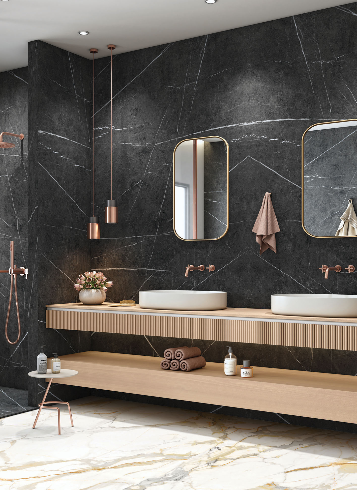 • Ưu điểm: Đá Nung kết Lamar là lựa chọn lý tưởng khi lát sàn phòng tắm và nhà vệ sinh nhờ khả năng chống thấm nước, chống trơn trượt và dễ dàng vệ sinh. Với bề mặt cứng chắc, ít bám bẩn và kháng khuẩn tốt, loại đá này giúp không gian luôn sạch sẽ, bền đẹp theo thời gian, đồng thời mang lại vẻ sang trọng và hiện đại cho nội thất.