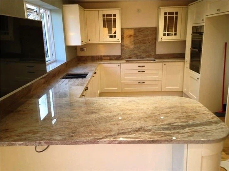 Đá Granite Vàng Kashmir (Kashmir Gold) nổi bật với gam màu vàng ấm pha lẫn những đường vân đỏ nâu tự nhiên, tạo nên vẻ sang trọng và cuốn hút. Với độ bền cao, khả năng chống trầy xước và chịu nhiệt tốt, loại đá này thường được ưa chuộng trong ốp lát nội – ngoại thất, mang lại không gian ấm áp và tinh tế.