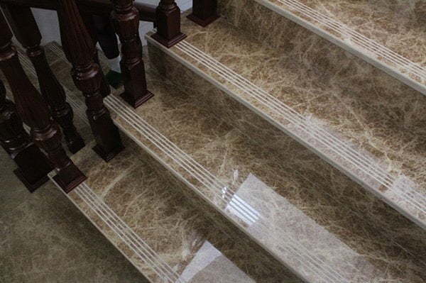 Marble khi ốp cầu thang mang lại vẻ đẹp sang trọng và tinh tế nhờ những đường