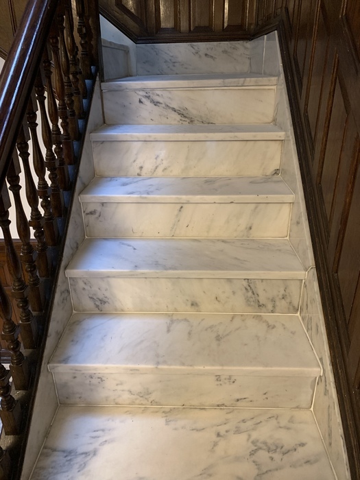 • Ưu điểm: Đá Marble khi ốp cầu thang mang lại vẻ đẹp sang trọng và tinh tế nhờ những đường vân tự nhiên độc đáo, giúp không gian trở nên đẳng cấp và ấn tượng. Bề mặt đá sáng bóng, mát lạnh, tạo cảm giác thoải mái khi sử dụng, đồng thời dễ dàng vệ sinh và giữ được độ bền màu theo thời gian. Đây là lựa chọn lý tưởng để nâng tầm thẩm mỹ và giá trị cho công trình.
