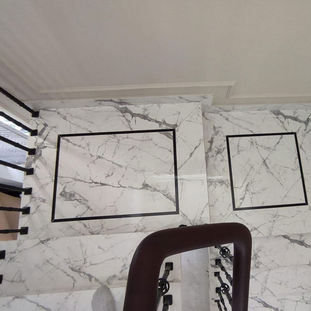 • Ưu điểm: Đá Nung kết Lamar khi ốp cầu thang mang đến vẻ đẹp sang trọng với bề mặt vân đá tự nhiên tinh tế, tạo điểm nhấn ấn tượng cho không gian. Bên cạnh đó, nhờ độ cứng cao, khả năng chống trầy xước và chống thấm tốt, loại đá này đảm bảo độ bền lâu dài, dễ vệ sinh, giữ cầu thang luôn sáng bóng và an toàn trong quá trình sử dụng.