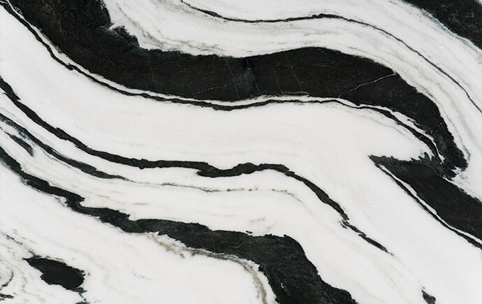 Mô tả: Đá marble Panda White là loại đá cẩm thạch tự nhiên nổi bật với nền trắng tinh khôi kết hợp các đường vân đen uốn lượn tự do, tạo hiệu ứng tương phản mạnh mẽ và nghệ thuật như tranh thủy mặc Trung Hoa. Xuất xứ chủ yếu từ tỉnh Tứ Xuyên, Trung Quốc, đá có độ cứng cao, chịu lực tố. Phù hợp cho ốp tường, lát sàn, mặt bếp, lavabo, cầu thang và trang trí nội thất cao cấp, mang lại vẻ sang trọng, hiện đại cho không gian sống.