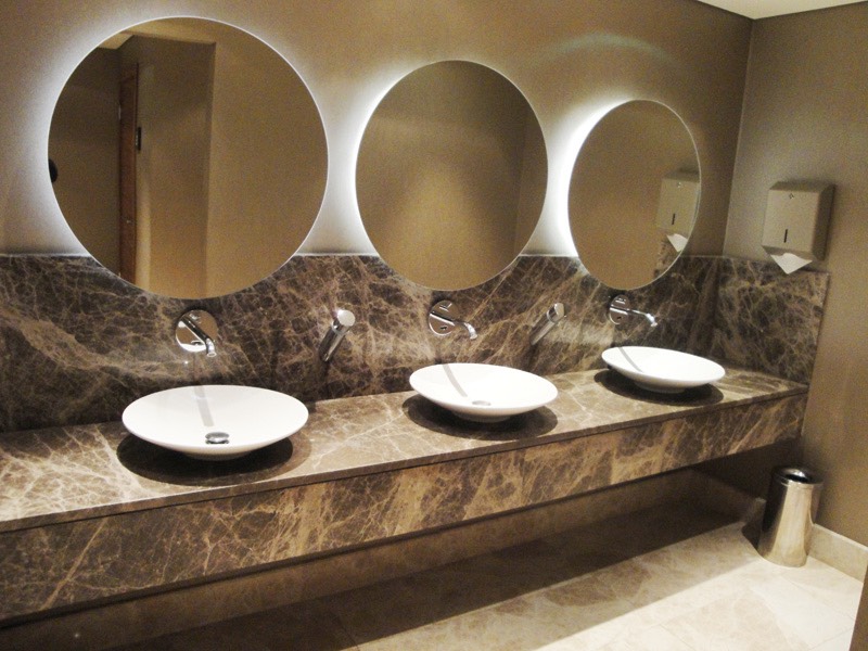 - Ưu điểm: Đá Marble khi ốp lavabo mang lại vẻ đẹp sang trọng và tinh tế nhờ những đường vân tự nhiên độc đáo, tạo điểm nhấn nổi bật cho không gian phòng tắm. Bề mặt đá mát, bóng và dễ lau chùi, giúp duy trì sự sạch sẽ, thoáng mát. Ngoài ra, Marble còn thể hiện sự đẳng cấp, nâng tầm thẩm mỹ và giá trị cho công trình.