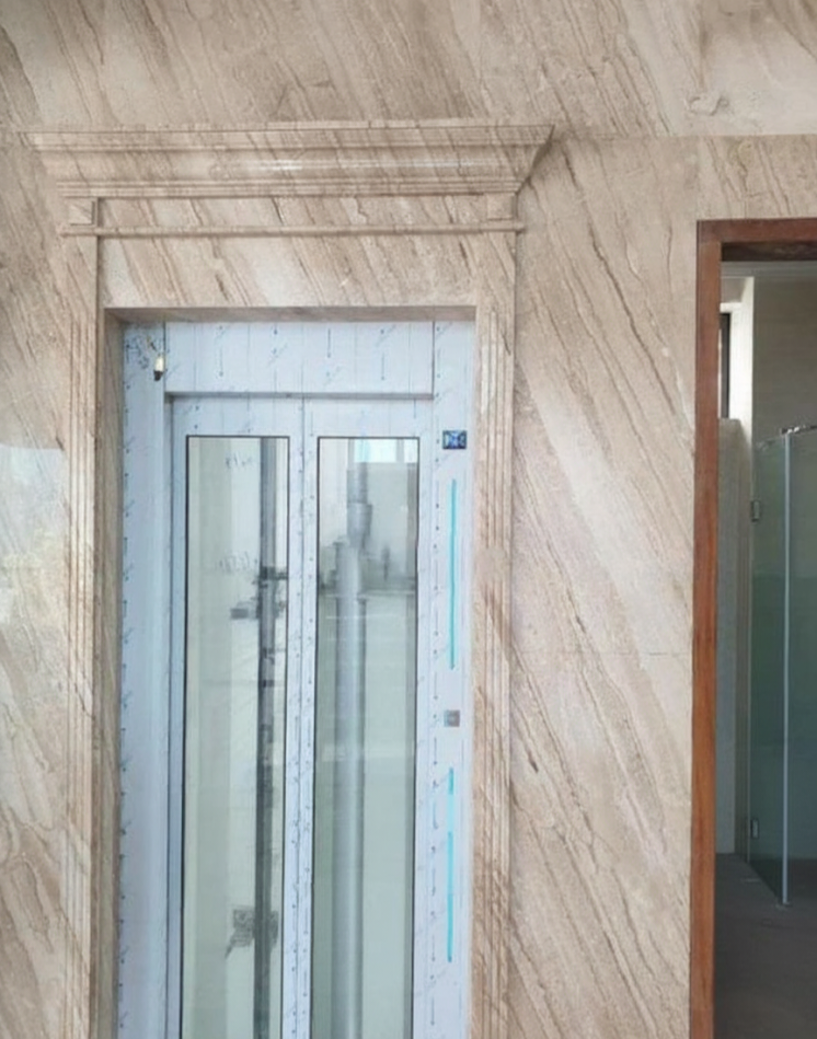 • Ưu điểm: Đá Marble khi ốp thang máy mang lại vẻ đẹp sang trọng và đẳng cấp nhờ bề mặt bóng mịn cùng hoa văn tự nhiên độc đáo. Loại đá này giúp không gian thang máy trở nên tinh tế, tạo điểm nhấn thẩm mỹ cao, đồng thời có độ bền tốt, dễ lau chùi và giữ được vẻ sáng mới trong thời gian dài.